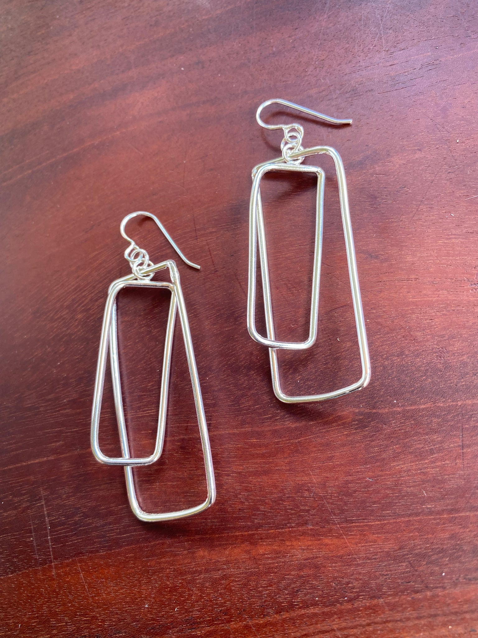 Double Rex(rectangle) Earrings. With the smaller rectangle on the inside, these earrings have a ton of movement!