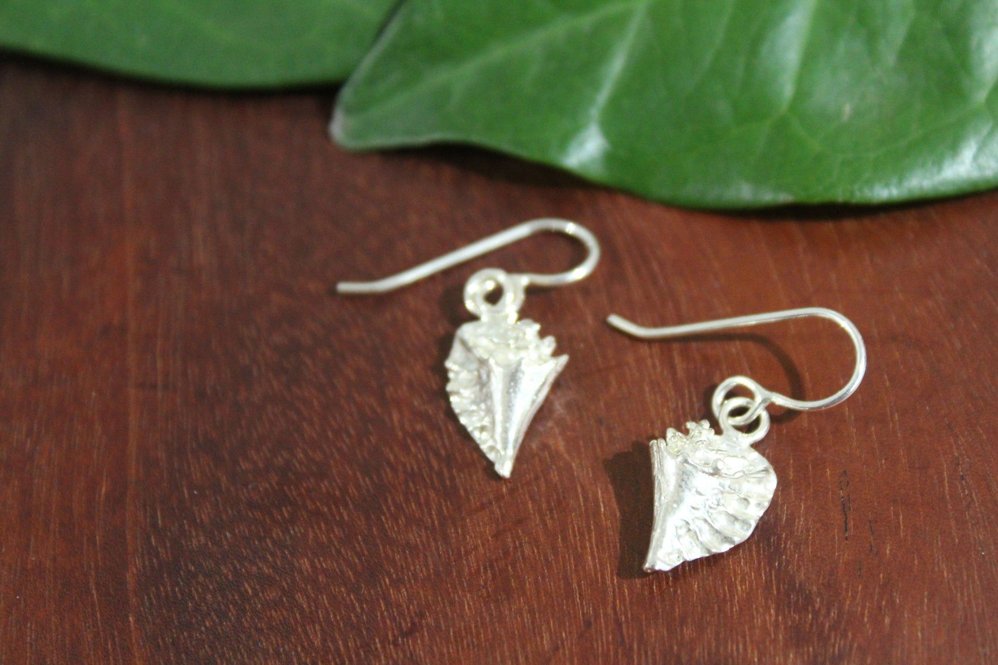 Handcrafted Conch shell earrings available in two sizes. *closeup of the small conch shell is provided*
