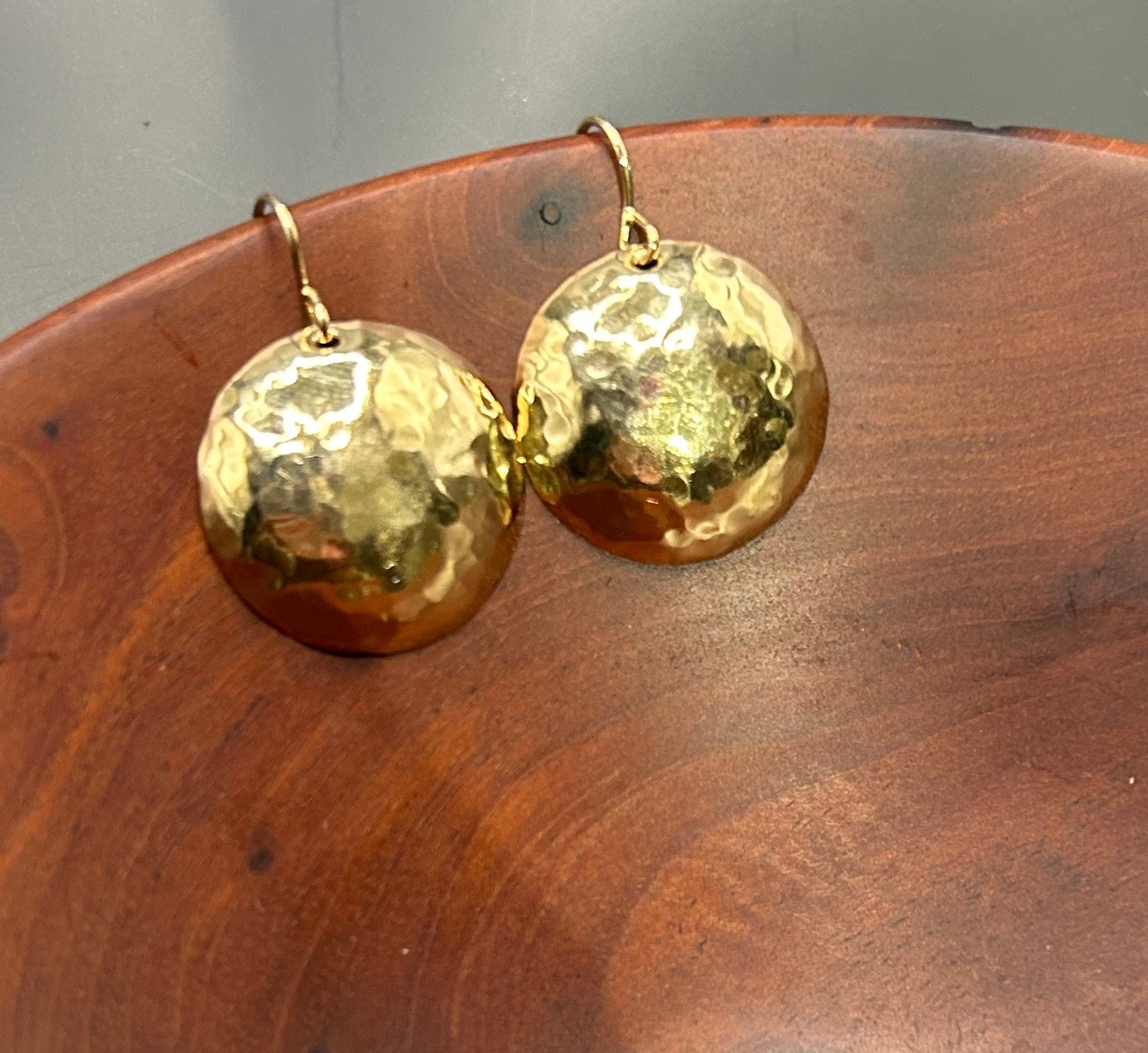 Hammered Shield Earrings available in three sizes in 14k gold.